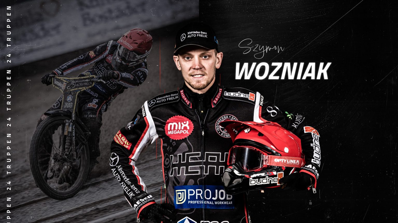 Det känns oerhört skönt att redan nu kunna presentera en förlängning med den förra säsongens lagkapten Szymon Wozniak. Det var självklart att förlänga med honom, och det är lika självklart att han fortsätter som lagkapten. Trots skador och logistiska problem pressade han sig själv varje match och ställde alltid upp för laget, och det är precis den typen av förare jag vill ha i mitt lagbygge. Fjolåret började mycket starkt, men skador satte stopp för framstegen, vilket påverkade hans totalpoäng. Szymon är därför väldigt revanschsugen och laddad inför säsongen 2024.