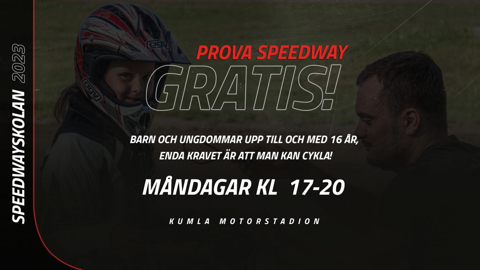 Vi tränar mellan ca 17-20, varmt välkomna till oss om ni är nyfikna på ungdomsverksamheten och vill prova speedway.